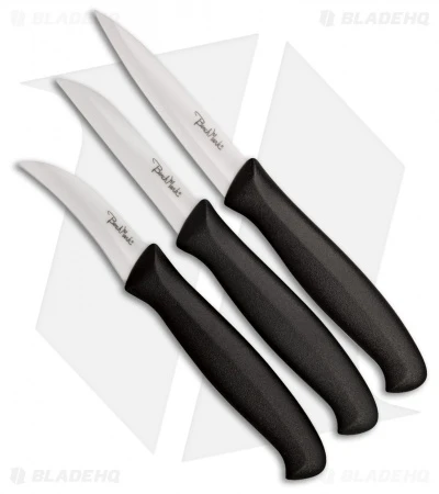 The Benchmark Ceramic Paring knife set is an easy addition to any kitchen with three knives each suited for different jobs. Includes a drop point paring knife, wharncliffe paring knife and peeling knife.