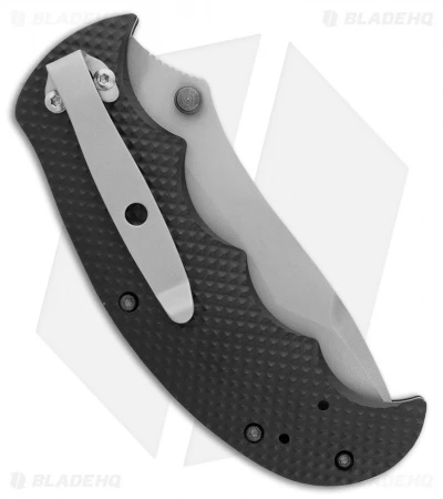 - Gray finished 440 stainless steel blade with a tanto style and thumb stud.
