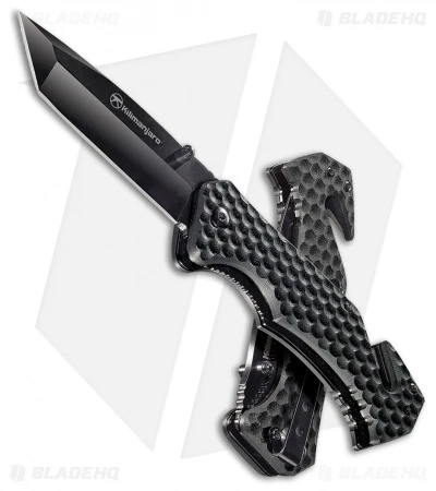 The Kilimanjaro UTAC folding knife is a perfect tool for any first responder or prepared citizen. The hollow ground tanto blade equally adept at cutting and trusting while the integrated strap cutter easily slices straps, webbing and cloth. A carbide glass breaker is located on the pommel of the knife, great for making entry into vehicles when doors are inoperable. Contoured black G-10 handle scales are highly textured for an exceptional grip in hand. The stainless steel deep carry pocket clip allows for right hand tip-down carry.