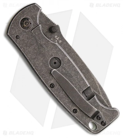 - 8Cr14MoV stainless steel, spear point blade with black stonewash finish, and thumb stud opener.