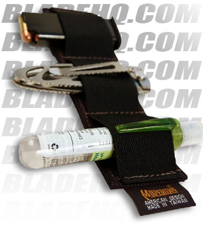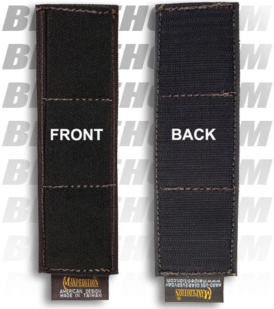 Three Mag Holder (Hook & Loop Modular 3-Clip Holder) attaches with hook side velcro to loop velcro sewn in various Maxpedition packs. It holds your magazine clips, multi-tools, or flashlights.