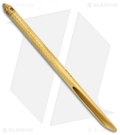 The Microtech TAC-P is a tactical spike with a wicked U’ needle tip. The handle is jimped for a sure grip and it features a glass breaker and lanyard hole. This one has a gold finish. It includes a carbon fiber print kydex sheath with a belt attachment.